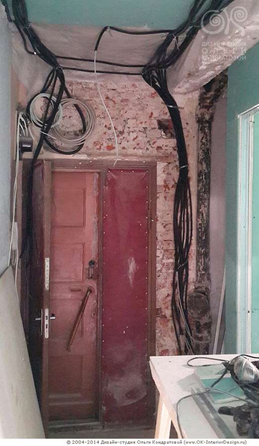 Тепер Ви відвідали далеко від досконалості.У вітальні, де, згідно дизайн-проекту, індустріальний лофт буде розбавлений елементами скандинавського стилю, замість білих стін, пілястр і акуратною сірої цегляної кладки ми поки можемо спостерігати обшивку страхітливого відтінку.