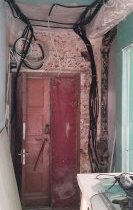 На фото: Мешкаючи дермантином стара вхідні двері і оголилася під штукатуркою цегляна кладка